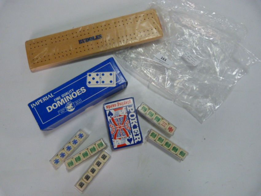 Imperial Dominoes, Pack of Playing Cards, Five Poker Dice and a Cribbage Board