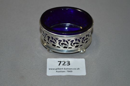 Hallmarked Silver Mustard Pot with Blue Glass Liner - Birmingham 1920, Approx 15g of Silver