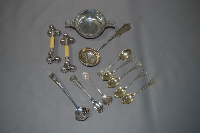 Silver Plated Ware; Cutlery, Knife Rests and a Pewter Bowl