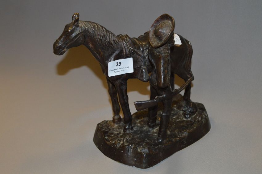 Bronze Effect Figurine "Prairie Cowboy and Horse"