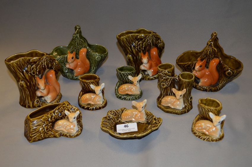 Ten Sylvac Pottery Vases; Squirrels and Deer