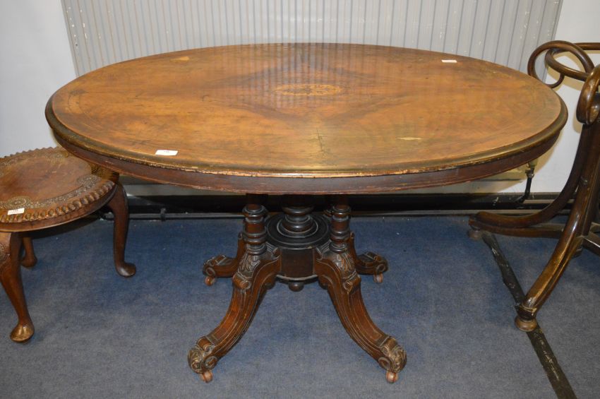 Victorian Walnut Inlaid Oval Topped Loo Table on Carved Legs