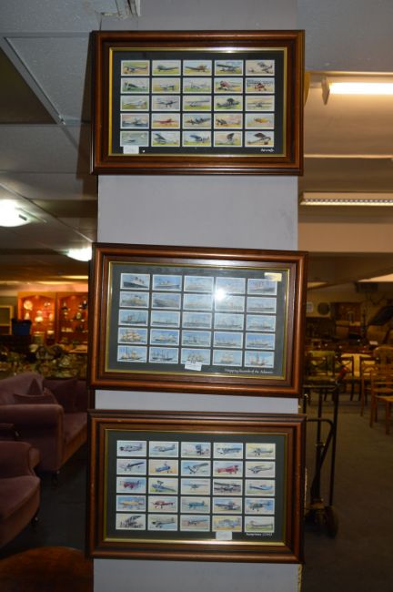 Set of Three Framed Player's Cigarette Cards; Aeroplanes and Shipping
