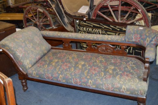 Carved Walnut Framed Floral Upholstered Chaise Lounge