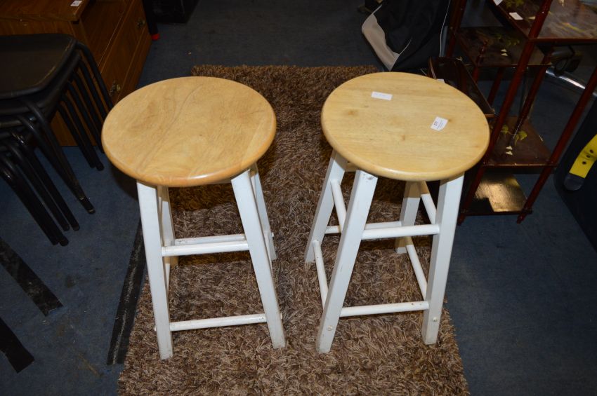 Pair of White and Beech Topped Kitchen Stools