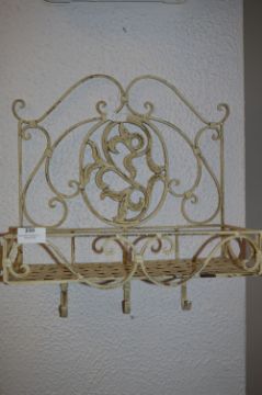Wrought Metal Decorative Wall Shelf with Hooks