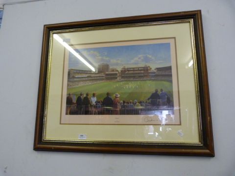 Framed Cricket Print "Lords by Allen Fearnley" Signed Dennis Compton