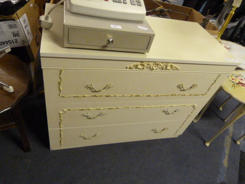 Ornately Decorated Cream Chest of Three Drawers