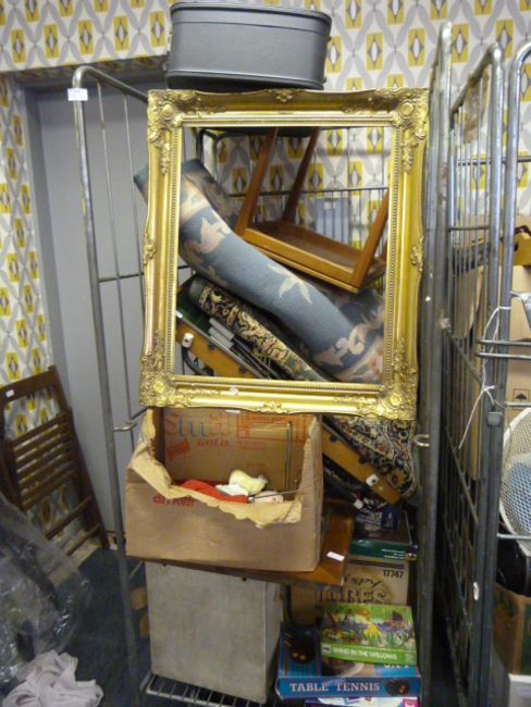 Cage Lot; Table Football, Medicine Cabinet, Puzzles and Games, Rugs, Picture Frame and Toys