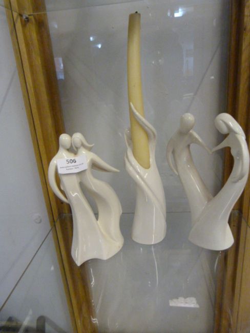 Set of Three White Pottery Figurines "Circle of Love"