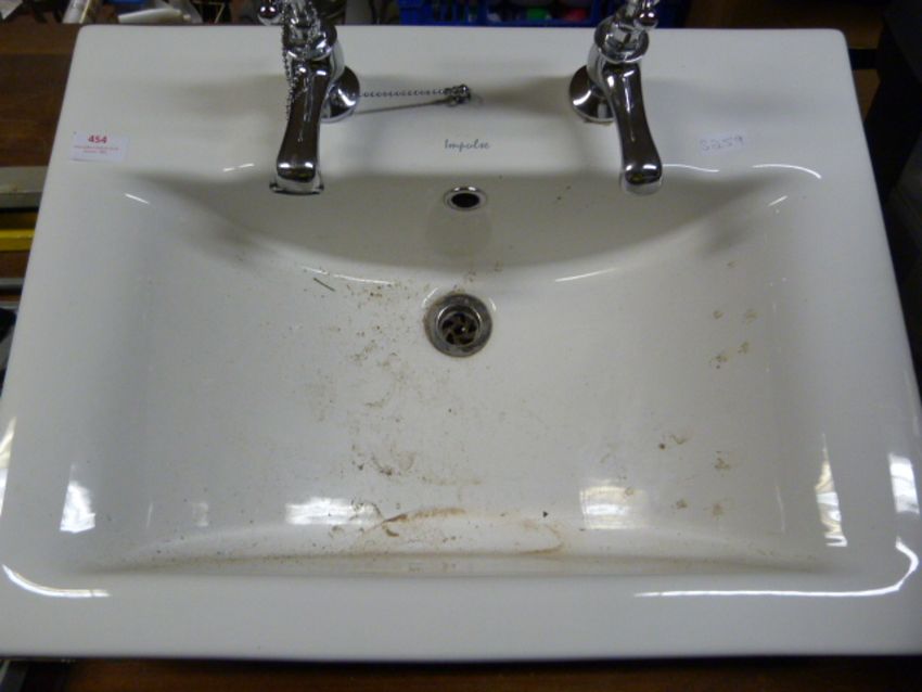 Impulse White Ceramic Sink Unit with Victorian Style Taps