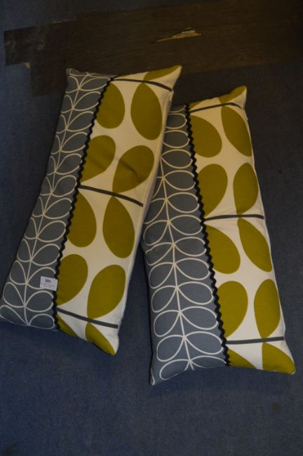 Pair of Green & Grey Patterned Cushions