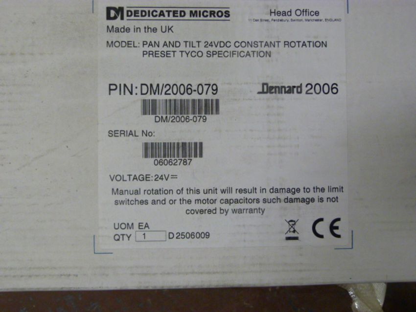 *Dedicated Micro Pan & Tilt Head - 24VDC Constant Rotation Tyco Specification