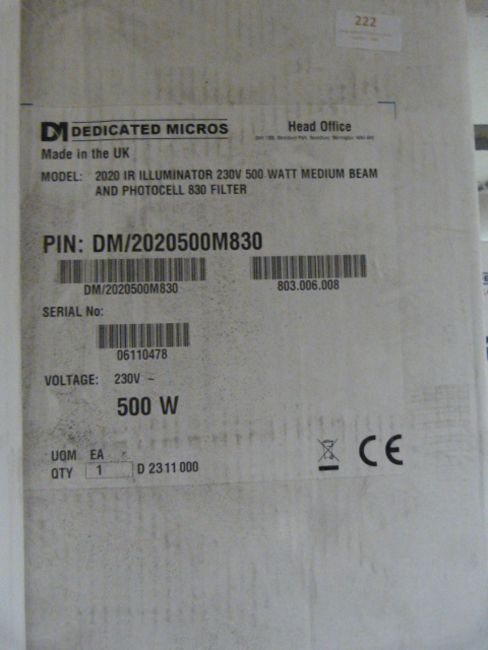 *Dedicated Micros 2020 IR Illuminator 239V 500W Medium Beam and Photocell 830 Filter