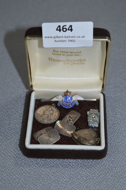 St Christopher Locket, Silver Cuff Links and Enamel Naval Badge