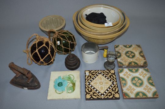 Brown Glazed Mixing Bowls,Gypsy Bowls, Jelly Mould, Iron Weights, Tiles, etc.