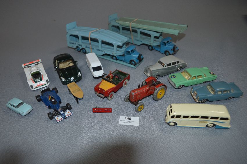 Tray Lot of Dinky Diecast Vehicles Including Two Transporters