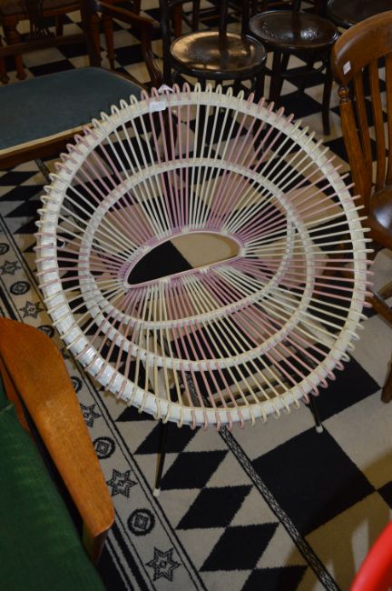 1960's Pink & White Cane Moon Chair