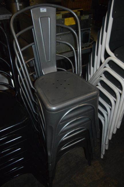 *Five Industrial Style Natural Metal Stackable Chairs