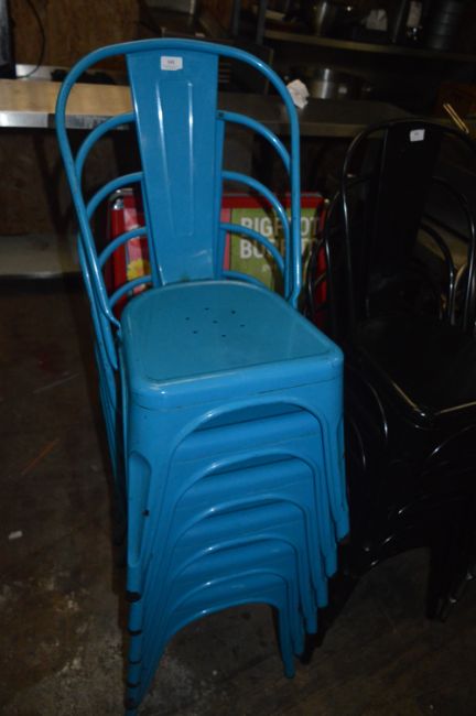*Six Industrial Style Blue Metal Stackable Chairs