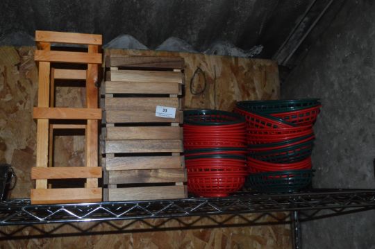 *Thirty Five Plastic Chicken Baskets, Wood Trays, etc.
