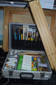 Flight Case Containing Artists Easel, Paints, Brushes and Accessories