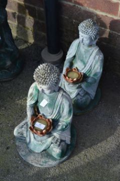 Pair of Plastic Garden Ornaments - Buddhas