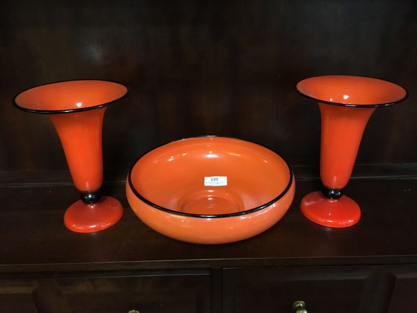 Orange Glass Fruit Bowl and Vase Set