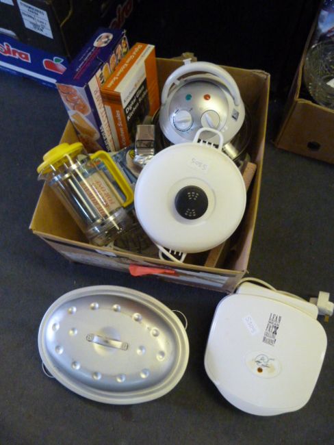 Box Containing Slow Cooker, Grilling Machine, Coffee Pots, Fish Steamer, etc.