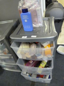 Three Height Storage Drawers and Contents of Assorted Cosmetics