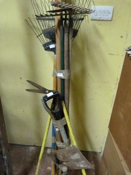 Garden Tools; Rakes, Hoe, Forks, Shears, etc.