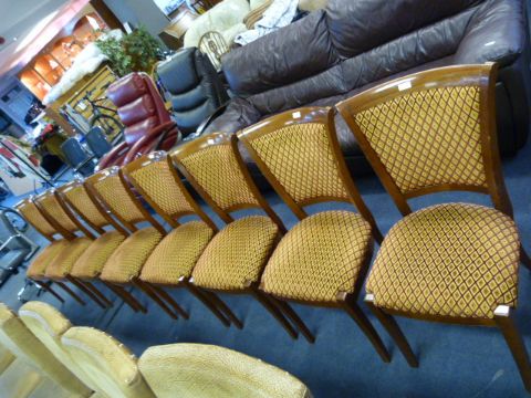 Set of Eight Walnut Framed Upholstered Dining Chairs