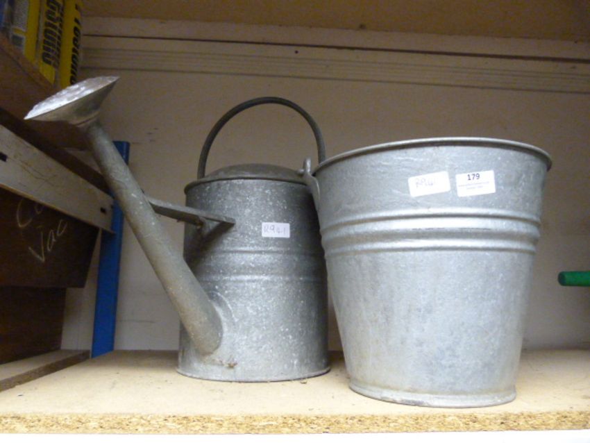 Galvanised Watering Can with a Brass Rose and a Brass Bucket