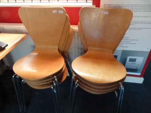 *Eight Chrome Framed Chairs with Plywood Seats and Backs
