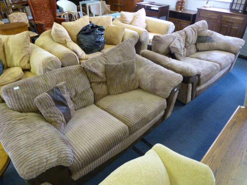 Two Brown Corduroy Two Seat Sofas