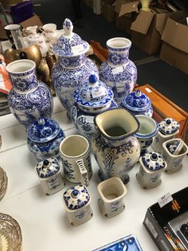 Collection of Blue & White Delft; Vases, Mugs, Lidded Vase, etc.