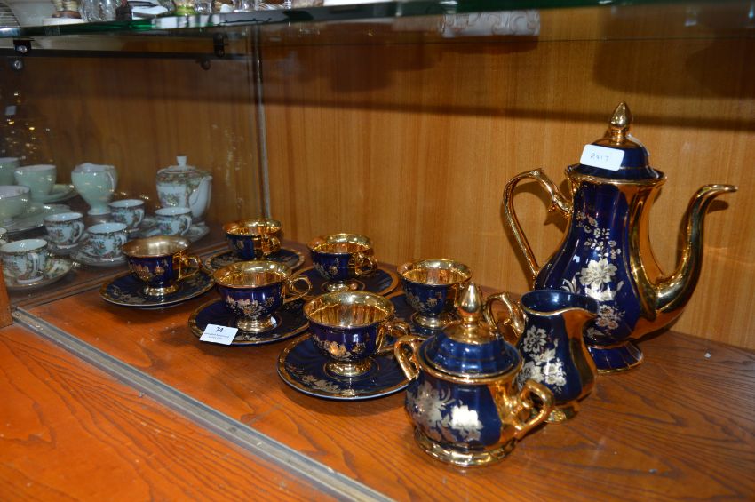 Gilt & Blue Floral Pattern Tea Set Fifteen Pieces