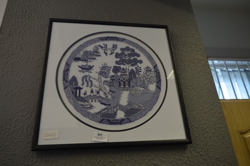Framed Needlework Picture - Willow Pattern