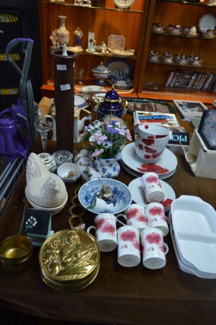 Poppy Printed Dinnerware, Mugs, Brass Nut Roaster, Glassware, etc.