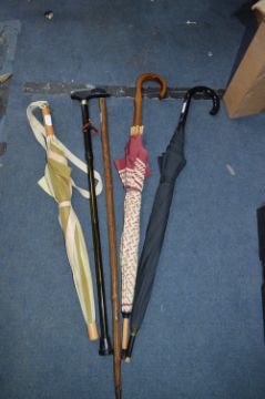 Three Umbrellas and Two Walking Sticks