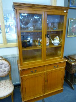 Walnut Effect Wall Display Cabinet with Cupboard Base