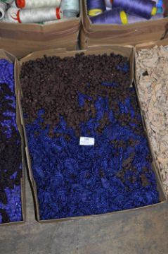 Box Containing Blue Woven Cord Button and Brown Rolled Ribbon Buttons