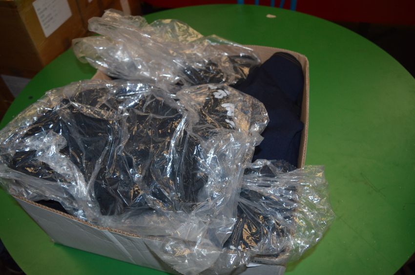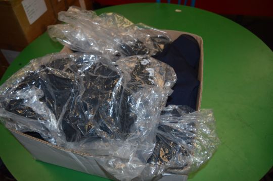 Box Containing 50 Assorted Items; Stretch Trousers, Net Tops, Ladies Fashion Tops, etc.