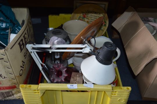 Box Containing Pottery Jugs, Plant Pots, Glass Vases, Lamps, etc.