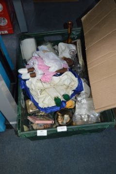 Box Containing Rag Dolls, Dressing Table Set, Ornaments, Candles, etc.