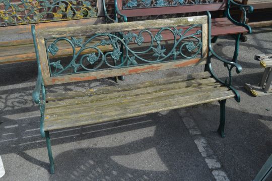 Cast Metal & Wood Garden Bench Rose Design
