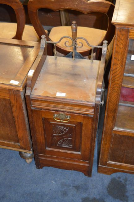 Walnut Coal Cabinet with Brass Gallery Back and Shovel