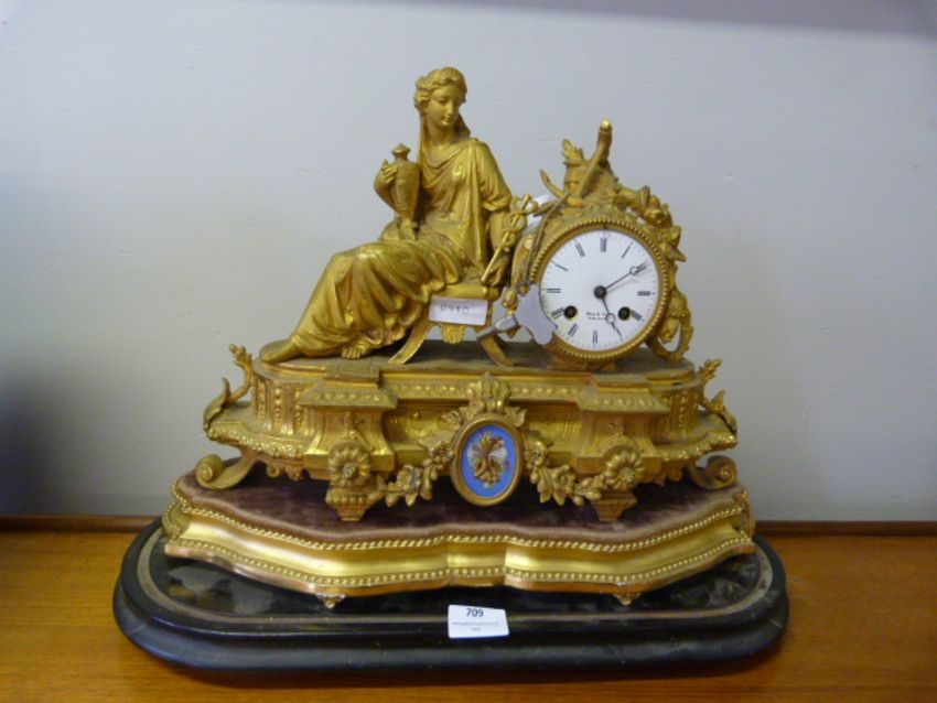 French Gilt Decorated Mantel Clock by Maw & Son Doncaster