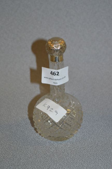 Embossed Silver Topped Glass Scent Bottle