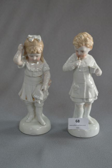 Pair of Early 20th Century Pottery Figurines - Boy and Girl